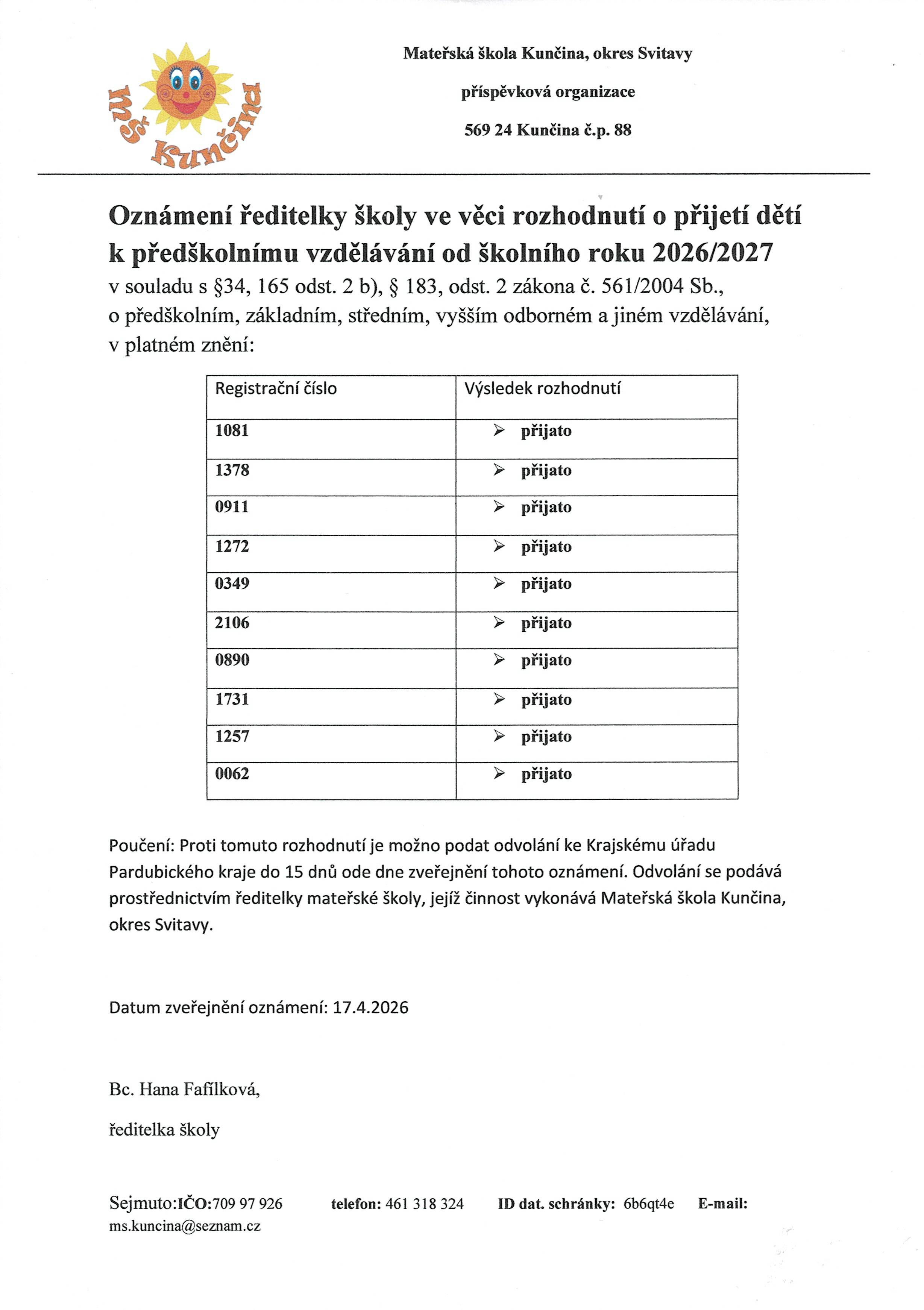 Mateřská školaProvozní doba MŠ: po-pá 6.00-16.00 hod.