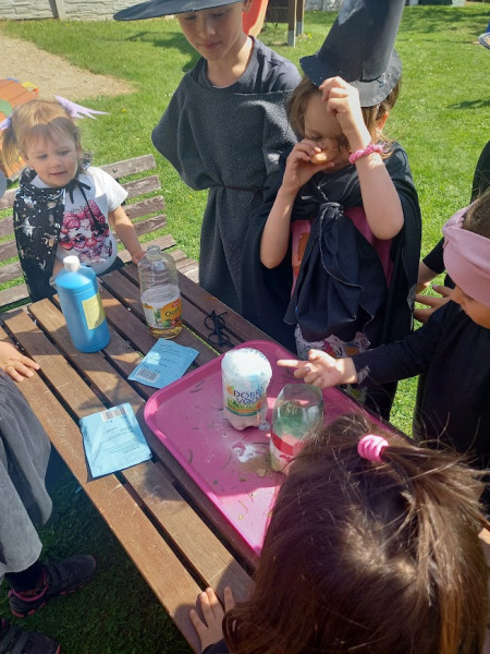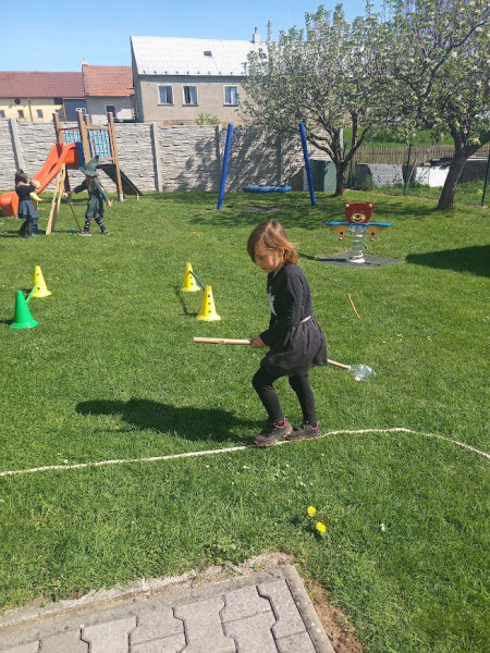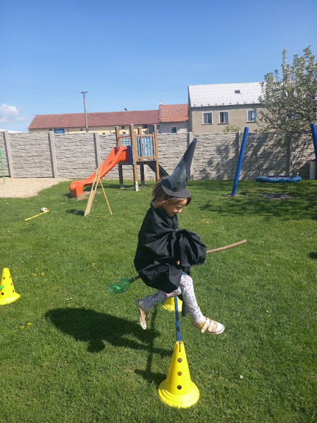 Dne 30.4.2025 jsme si s dětmi udělali "Čarodějnický den". Děti si vyzkoušely projít překážkovou dráhu s koštětem, které si vyrobily. Uvařily si lektvar a splnily zkoušku odvahy. Jako odměnou jim bylo osvědčení, čardějnická medaile, kouzelná koule, pendreky a čarodějnické perníčky, které si upekly.