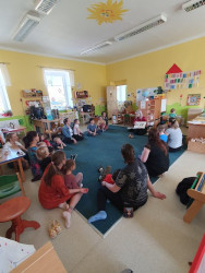 Ve spolupráci s MAP Moravskotřebovsko-Jevíčsko se uskutečnila dne 22.4.2025 Čtenářská dílnička s knihovnicí, paní Janou Mazurovou, DiS. Maminkám a dětem představila paní knihovnice knížku V knihovně je lev od autorky M. Knudsenové. Po přečtení příběhu si děti společně s maminkami vytvořili své lvíčky.