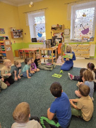 V úterý 18.11.2025 za námi přijela knihovnice, paní Jana Mazurová, DiS., z Městské knihovny Ladislava z Boskovic v Moravské Třebové. S dětmi interaktivně přečetla knížku "Chameleon Leon" od autorky Wattové Melanie. Děti si uvědomovaly výhody a nevýhody odlišnosti od ostatních.