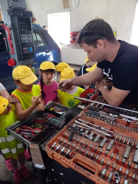 V pondělí jsme s dětmi navštívili autodílnu p. Kubiše. Dětem bylo ukázáno jak a kde se v Kunčině opravují auta, traktory a nákladní auta. Dětem se nejvíce líbilo utahování a povolování kola u auta spolu s ukázkou nářadí, které si mohly vyzkoušet a osahat.