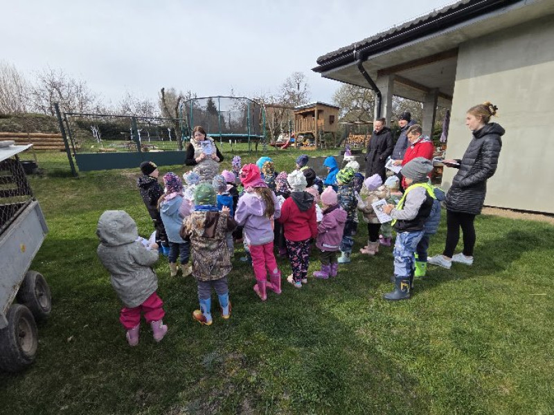 V pátek 10.4.2026 jsme navštívili paní Foretovou, maminku dětí z naší školky. Paní Foretová připravila dětem materiály o pšstrosech a ukázala nám malá pšstrosátka, kachňátka, housátka i kuřátka. Mláďátka se dětem moc líbila.