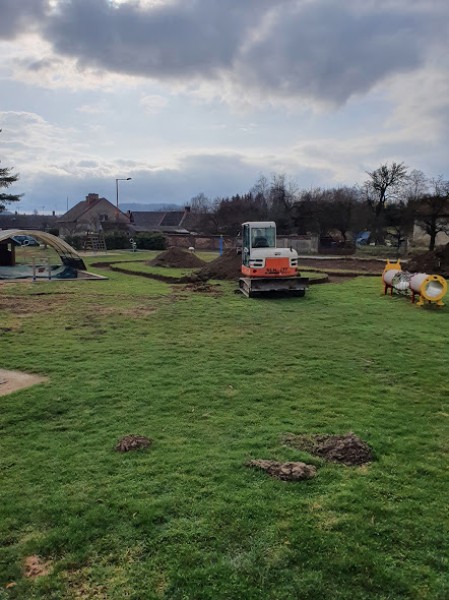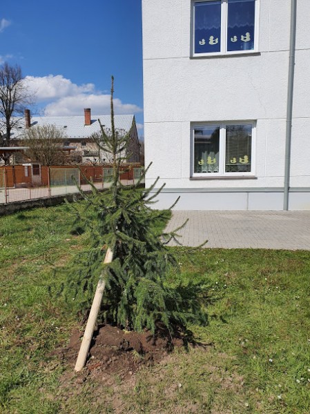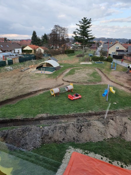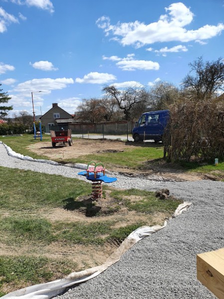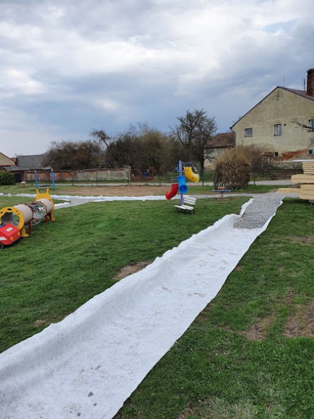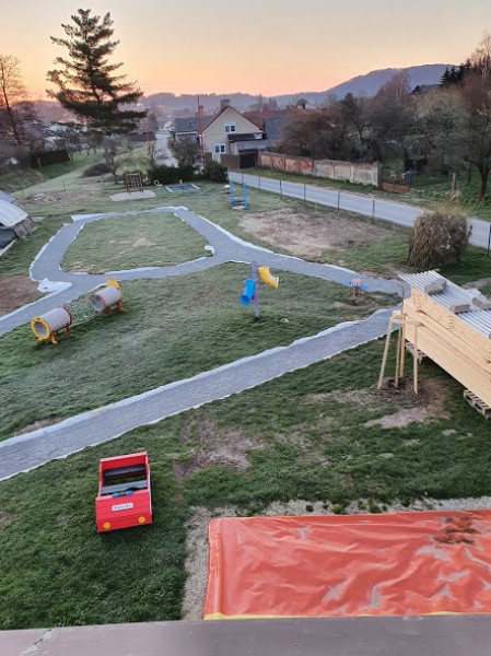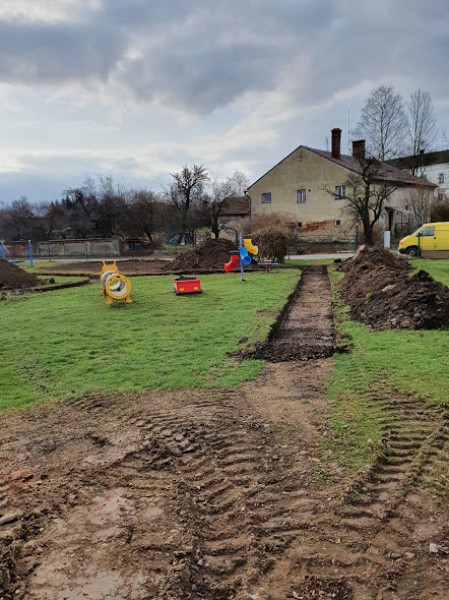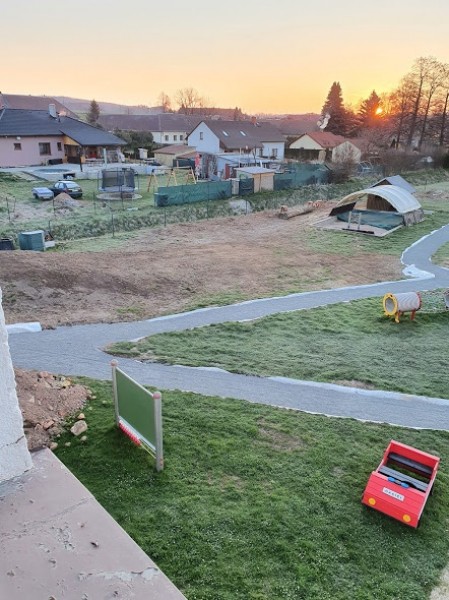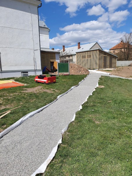 Obnova školní zahrady zdárně pokračuje. Budují se mlatové cestičky pro pěší chůzi i jízdu na odrážedlech. Byla vysazena převislá  sakura a smrk omorika. S výsadbou živého plotu čekáme na návrat všech dětí do školky.