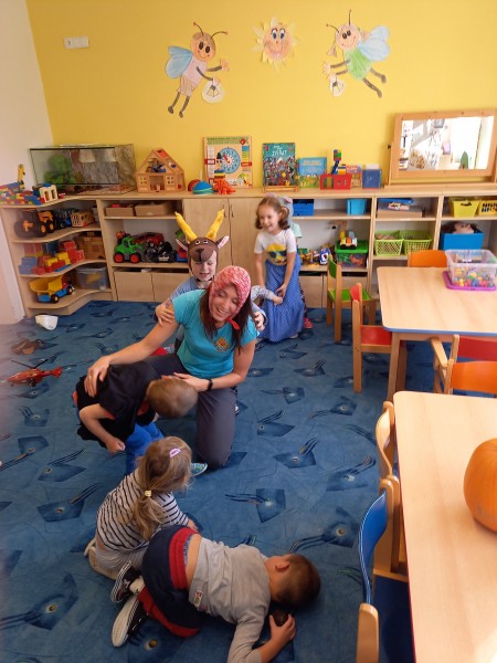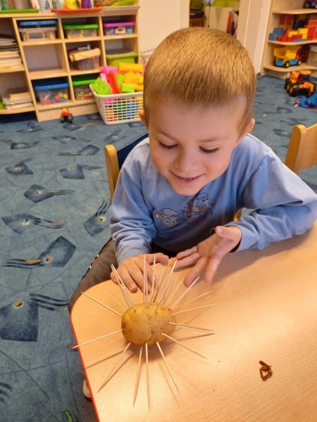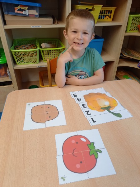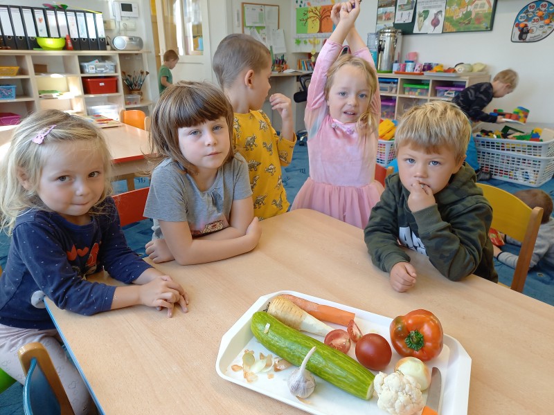 Tento týden jsme se v naší školce věnovali zelenině. Děti se seznámily se zahradními a polními pracemi při pěstování a sklíení zeleniny a s vybranými druhy zeleniny. Vycházky jsme směřovali na pole, kde děti názorně viděly, jak se různé druhy zeleniny sklízí. Ve třídě jsme si udělali výstavku zeleniny a malou ochutnávku. V kuchyňce si děti zkoušely zeleninu krájet. Velmi je zaujala netradiční technika výtvarného zpracování kukuřice - z popcornu a vyrábění z brambor.