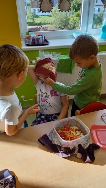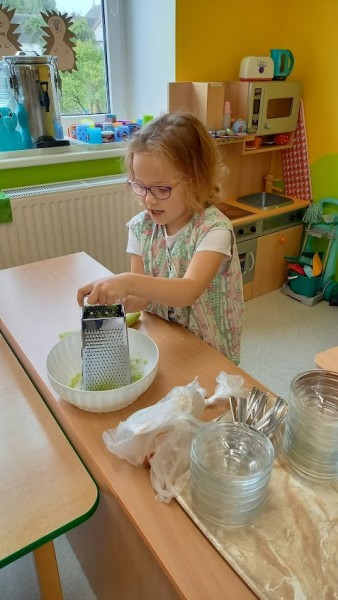 Také si děti mohly vyzkoušet přípravu okurkového salátu a tak se něco dozvědět o jeho přípravě.....