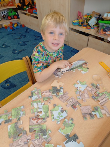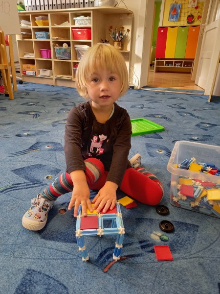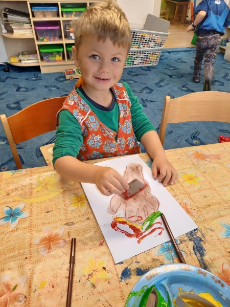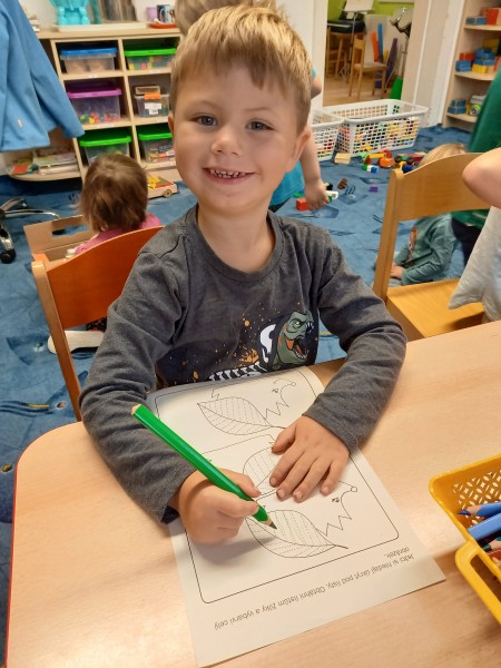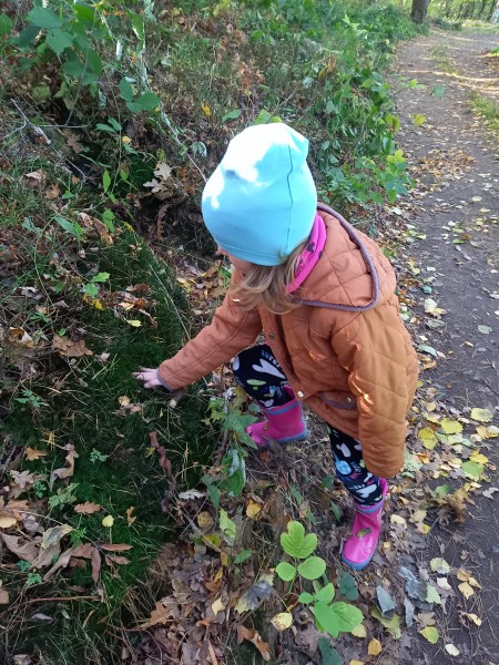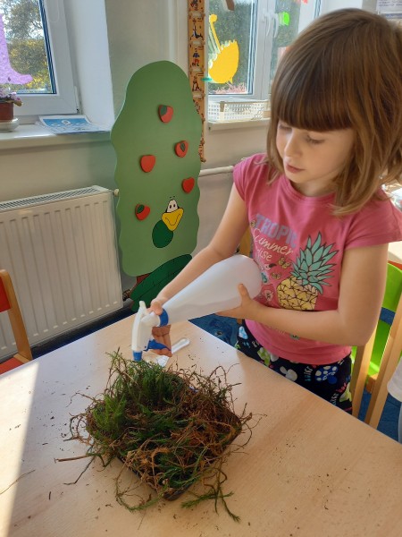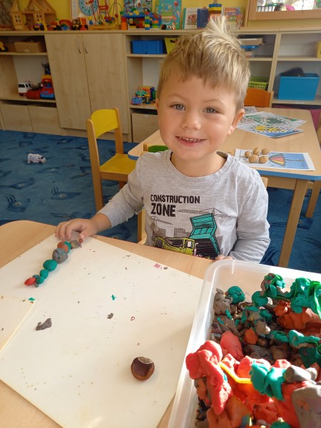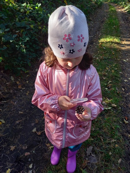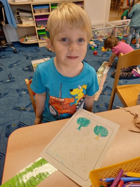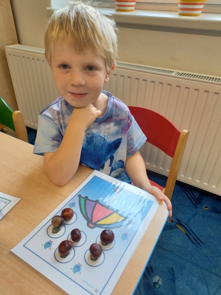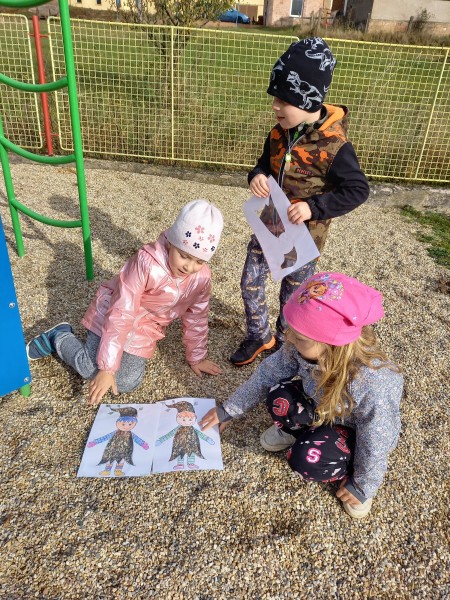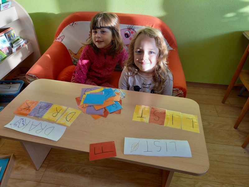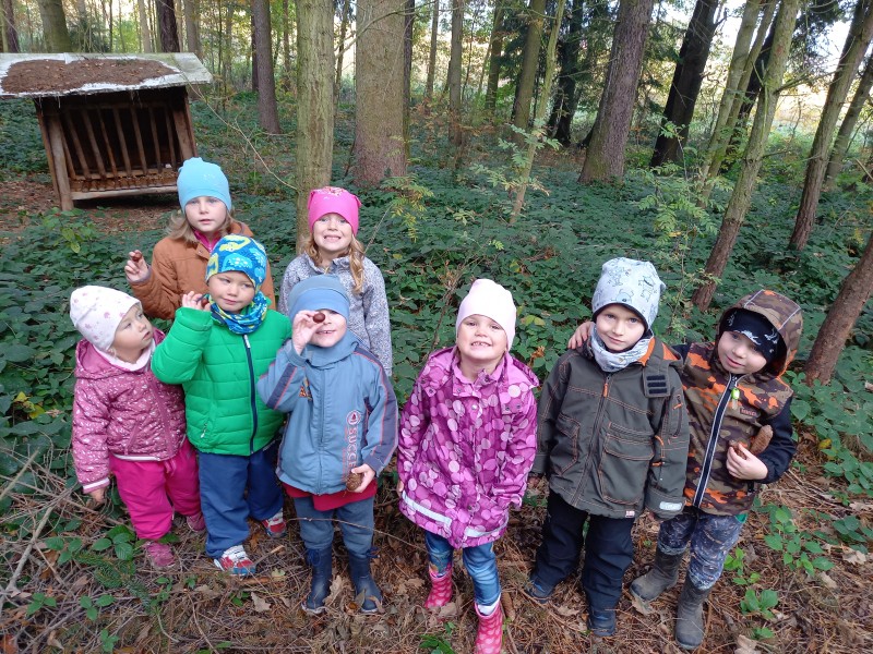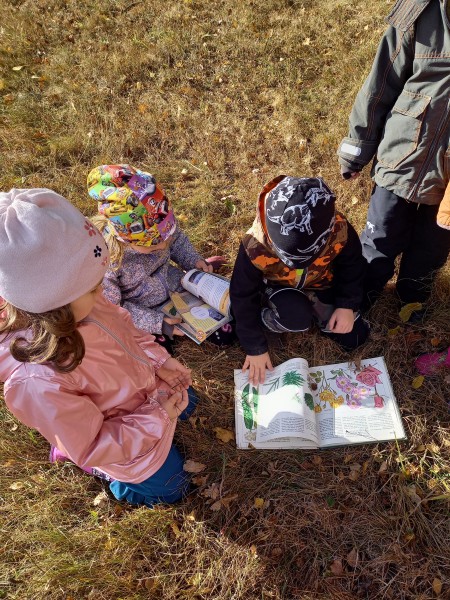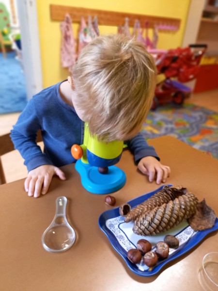 Děti se učily vnímat krásy a barevnosti podzimu, změny v přírodě. Při procházkách do blízkého lesa se seznámily s vybranými druhy přírodnin a podzimními plody. Zkoumaly šišky, kůru, mech, listy a jehličí, které jsme poté ve třídě využily na pokusy a další vzdělávací činnosti. Formou her se děti seznamovaly také se správným oblékáním na podzim. Zpívali jsme písničky o podzimu, využívaly jsme různé hudení nástroje. Děti velmi zaujala výroba a následné použití "oblékacího skřítka", díky němuž zkoumaly podzimní přírodu.