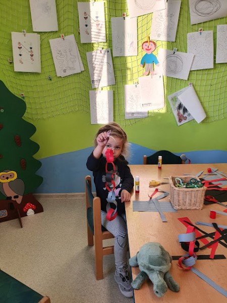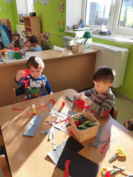 Děti bavilo tvořit čerty z brambor a drátěnek, vyrábět čertovský řetěz, zkoumat uhlí, peří a sníh, malovat čerta uhlem, malovat anděla prstovými barvami, hrát si "Na Peklo", vařit pekelné dobroty apod.