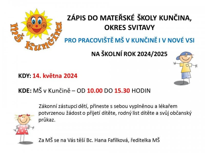 Úvod Kalendář akcí ZÁPIS DĚTÍ DO MŚ