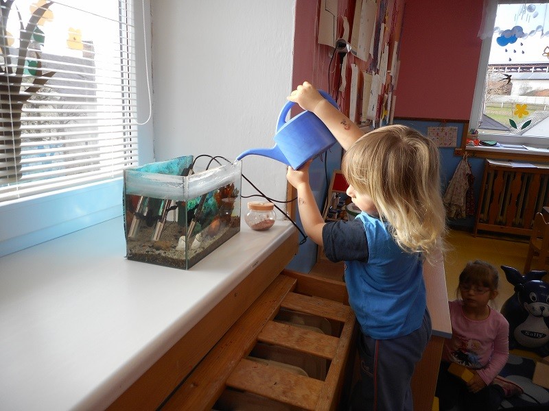 Děti se účastnily v rámci  probíraného tématu výletu do Licibořic, kde poznávaly zvířátka a charakteristické rysy živých organismů. V průběhu týdne se seznamovaly i s charakterickými vlastnostmi neživé přírody.  Rády si hrály s kamínky, ze kterých sestavovaly obrázky, tvořily "řeku" z krepového papíru,  kamínků a rybek, malovaly louku a zapouštěly do ní "sedmikrásky", upevňovaly znalosti základních barev, účastnily se experimentů - pozorovaly, zda plave kámen nebo klacík, co se děje na hladině vody, když se zalije olejem a co udělá šnek, když ochutná citron. Tvořily z modelíny šneky a z prokladků od vajec  housenky. Pozorovaly zakuklení housenek v naší motýlkové zahrádce. Staraly se o zvířátka ve třídě. Hrály si s plyšovými zvířátky a připravovaly jim krmení - granule - mačkáním papíru. Zalévaly vypěstované přísady na zahrádku.